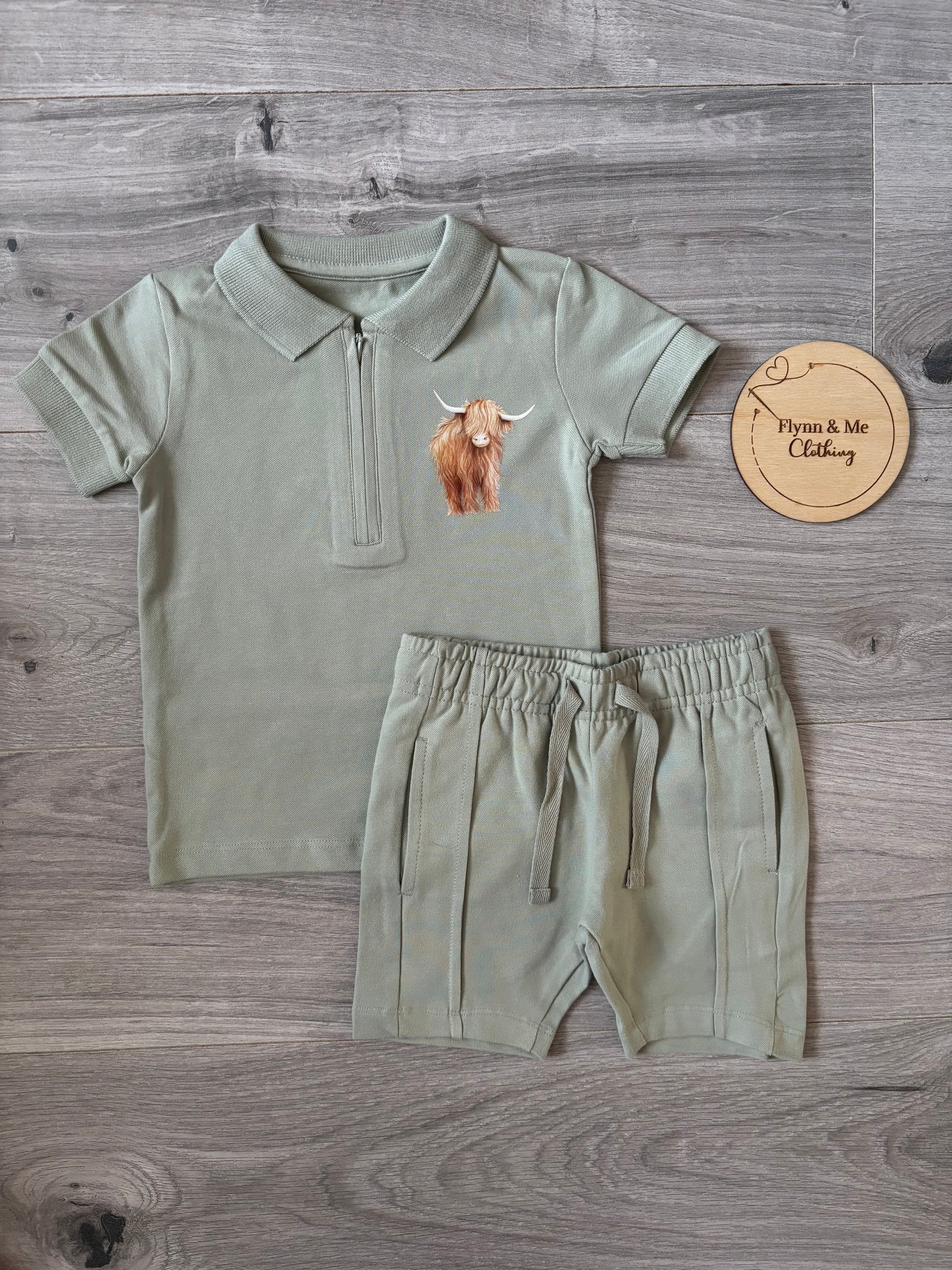 Our sage polo sets are the perfect to wear when exploring the outdoors, or for cozying up in rustic style. The polo top features a central zip (with fabric lining on the reverse) and the shorts include two front pockets and one on the reverse.