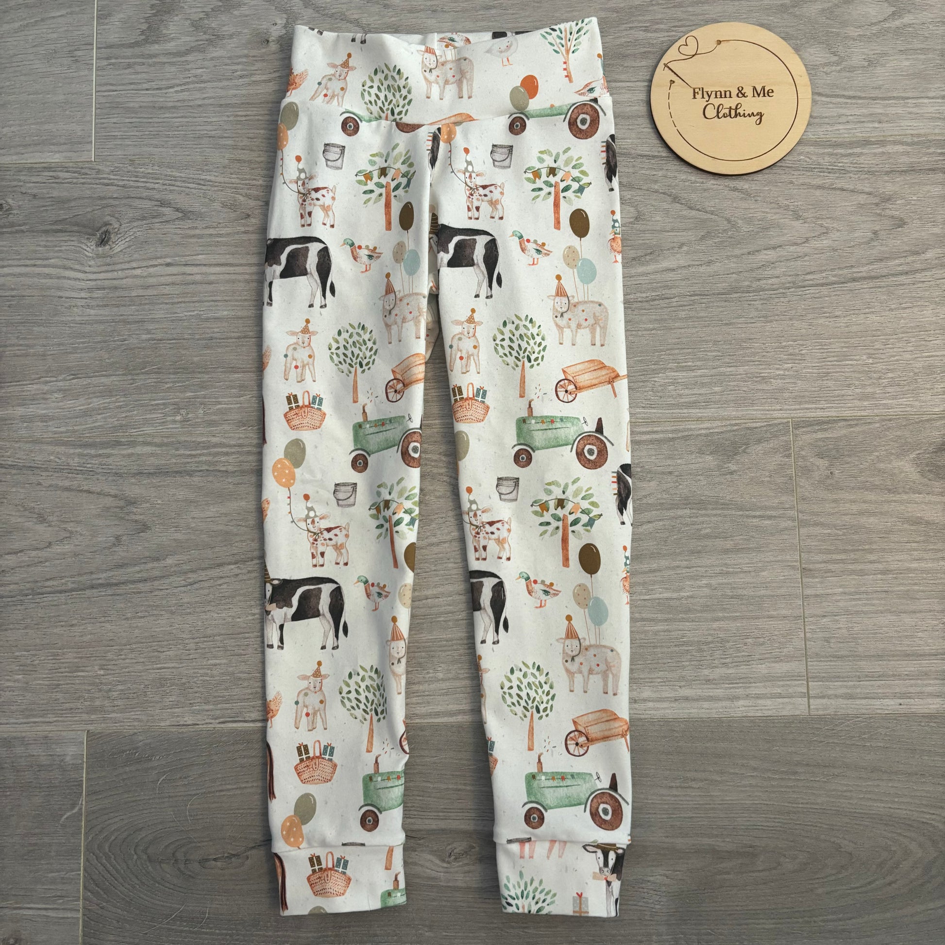 Celebrate a birthday in style with our farmyard birthday design - complete the look with our matching birthday top! Special Offer: Use code: BIRTHDAY10 to save when you order the complete outfit (birthday on the farmyard leggings and transfer top or sweater)