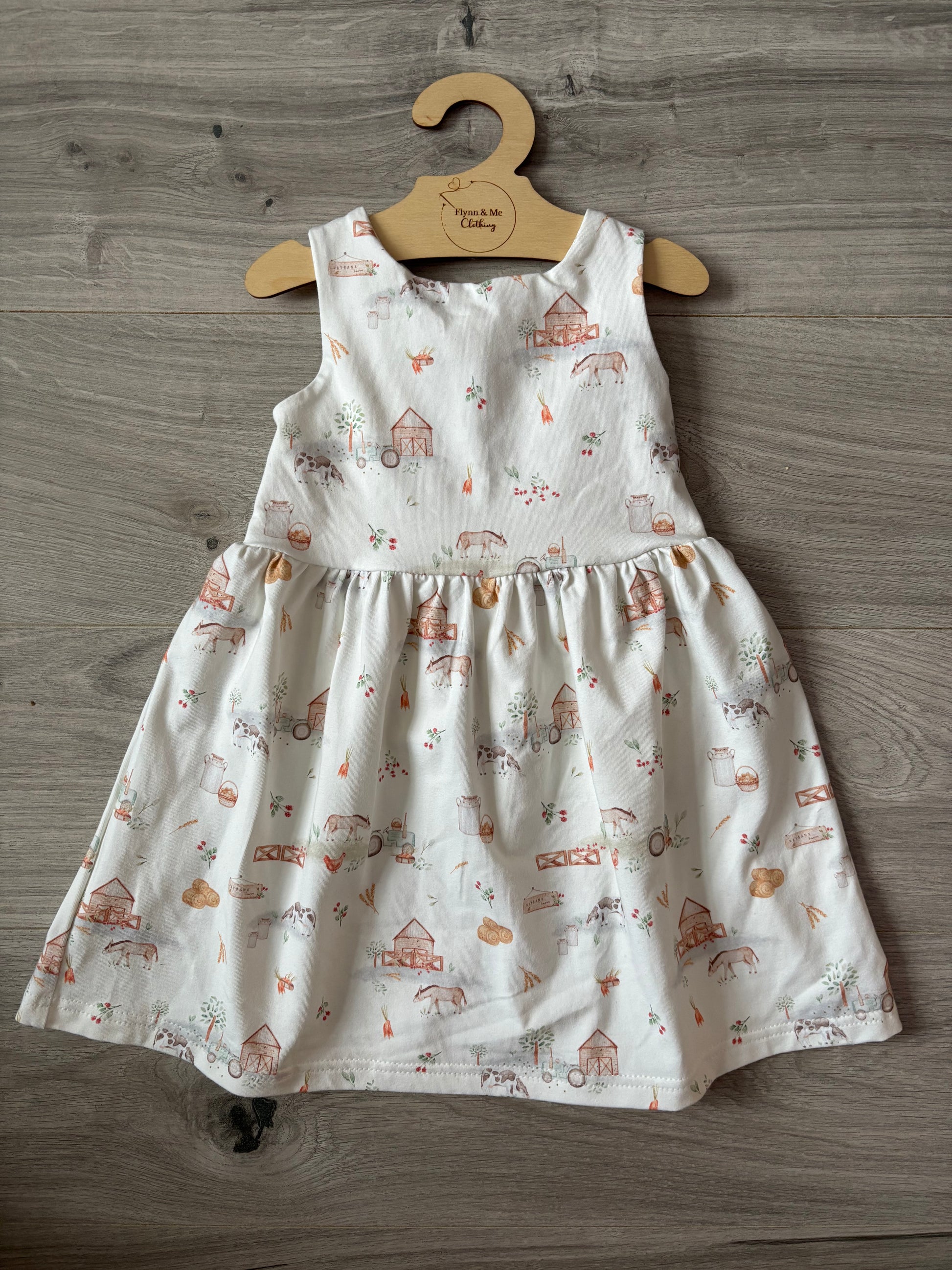 Our bow tie dress features a sleeveless bodice with a square neckline, a gathered skirt with an elasticated back and tie back fastening. This dress has been handmade from organic cotton jersey, knitted and printed in the UK using eco-friendly techniques.