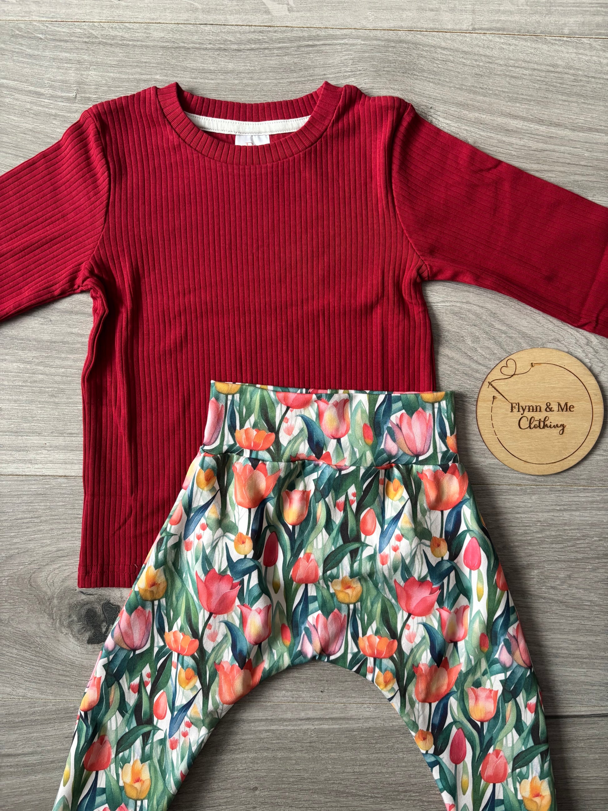 Springtime Tulips bursts into bloom with softly painted florals in fresh, joyful shades of pink, coral, yellow, and green. Flowing stems and gentle watercolour textures give this print a light, uplifting feel — perfect for welcoming brighter days, outdoor play, and little moments spent soaking up the season.